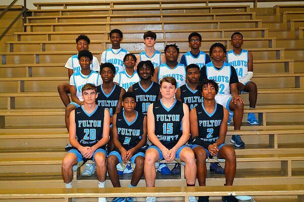 FULTON COUNTY BOYS BASKETBALL TEAM – Fulton County High School Pilots Boys 2021-2022 Basketball team members include, front row, left to right, Chade Everett, Mario Turner, Drake Manus, and DK Gossett; second row, Jaylen Esters, JJ Brown, and Terrance Johnson; third row, Damien Hill, JD Smith, J’Shon Jones, and Tristan Kinney; and fourth row, Jayden Smith, Omarion Pierce, Max Gibbs, Christian Smith, and Orion Campbell. Not pictured are Head Coach Brian Hood and Assistant Coach Chuck Murphy. (Photo by Barbara Atwill)