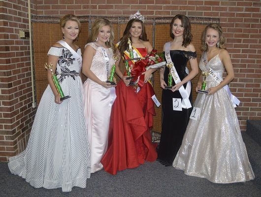 Anniston Perry, center, daughter of Derick and Vetra Perry of Dresden, Tenn., was crowned Miss Teen Banana Festival in the ages 13-15 division of Banana Festival pageants held Saturday at Fulton High School. She also received the Flair for Fashion award. From left, 1st alternate was Darcie Bell, daughter of David and Hollie Bell of Gleason, Tenn., 2nd alternate was Kaylee Tims, daughter of Bobby and Amy Tims of Martin, Tenn., Queen Anniston Perry, Lauren Yates was chosen 3rd alternate, and she is the daughter of Melanie Ayers and Jimmy Yates of Tiptonville, Tenn., and 4th alternate was Lilly Holzner, daughter of John and Tara Holzner of South Fulton. (Photo by Benita Fuzzell.)
